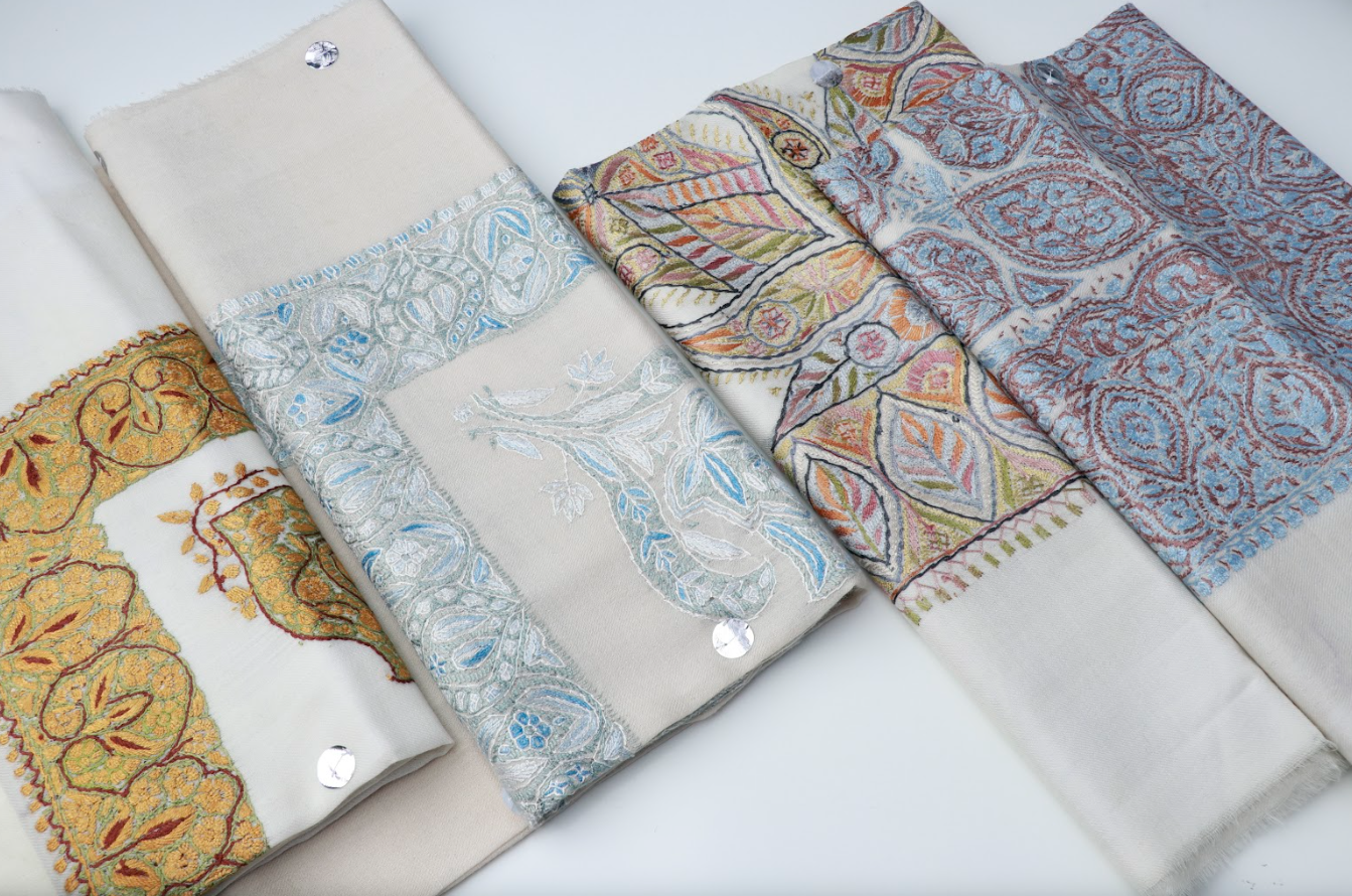 • تطريز بنقوش معقدة بالألوان الفاتحة
