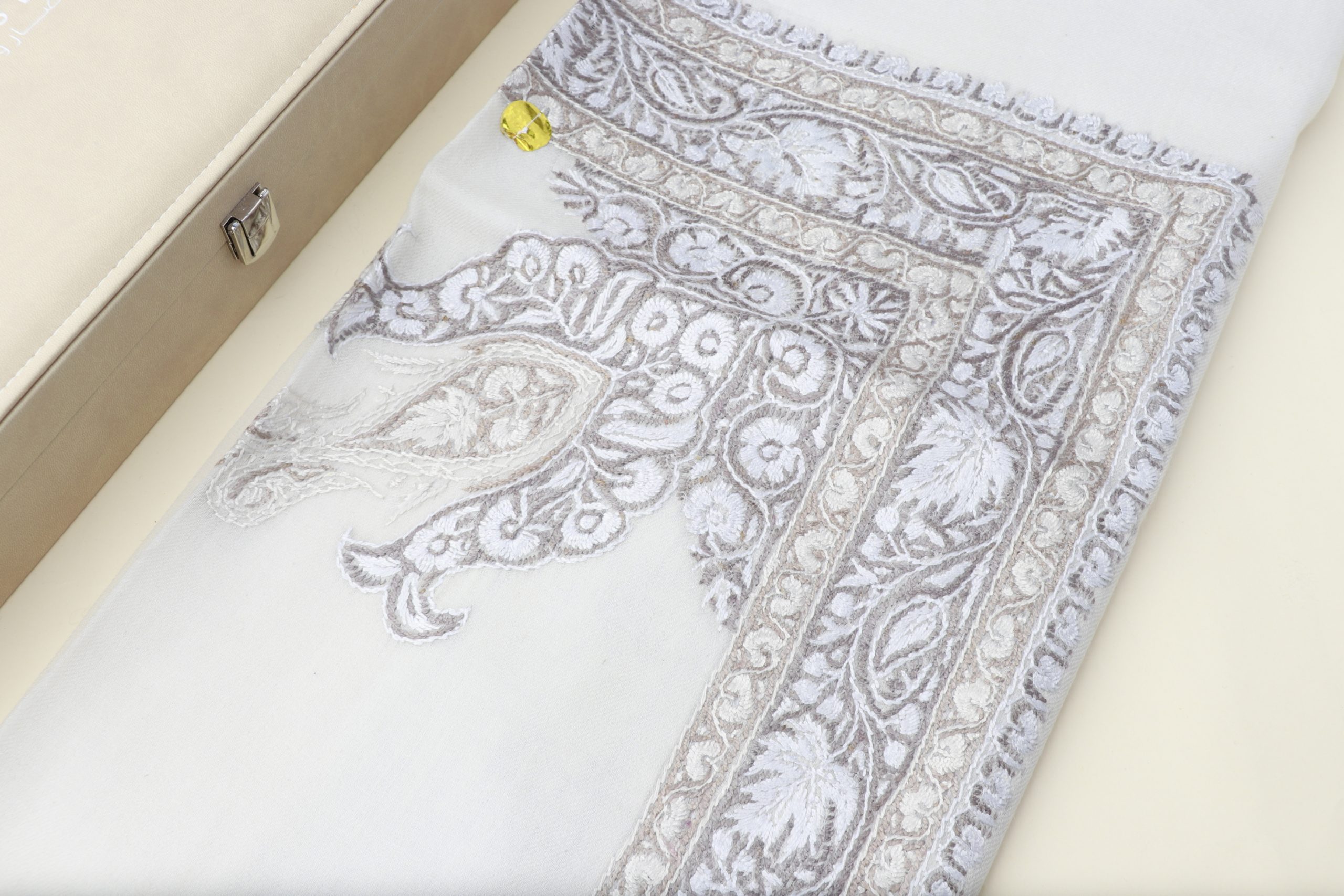 شال ابيض بتصميم فاخر وتطريز دقيق، يوفر لك إطلالة فاخرة في المناسبات الخاصة. مع تطريز خفيف بألوان هادئة، هذا الشال يجمع بين الأناقة والراحة ليمنحك حضورًا مميزًا في كل مناسبة.