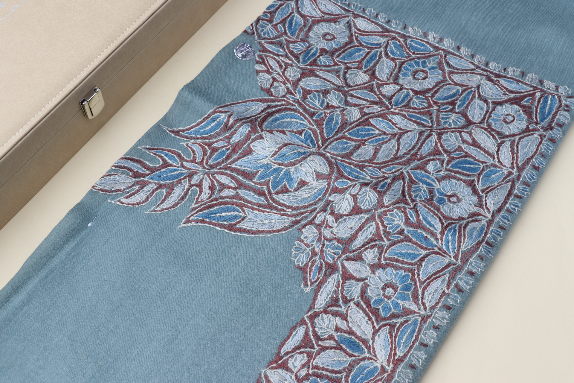 - التطريز عالي الجودة يمنح الشال مظهرًا فاخرًا ويعكس اهتمامًا واضحًا بأدق التفاصيل.