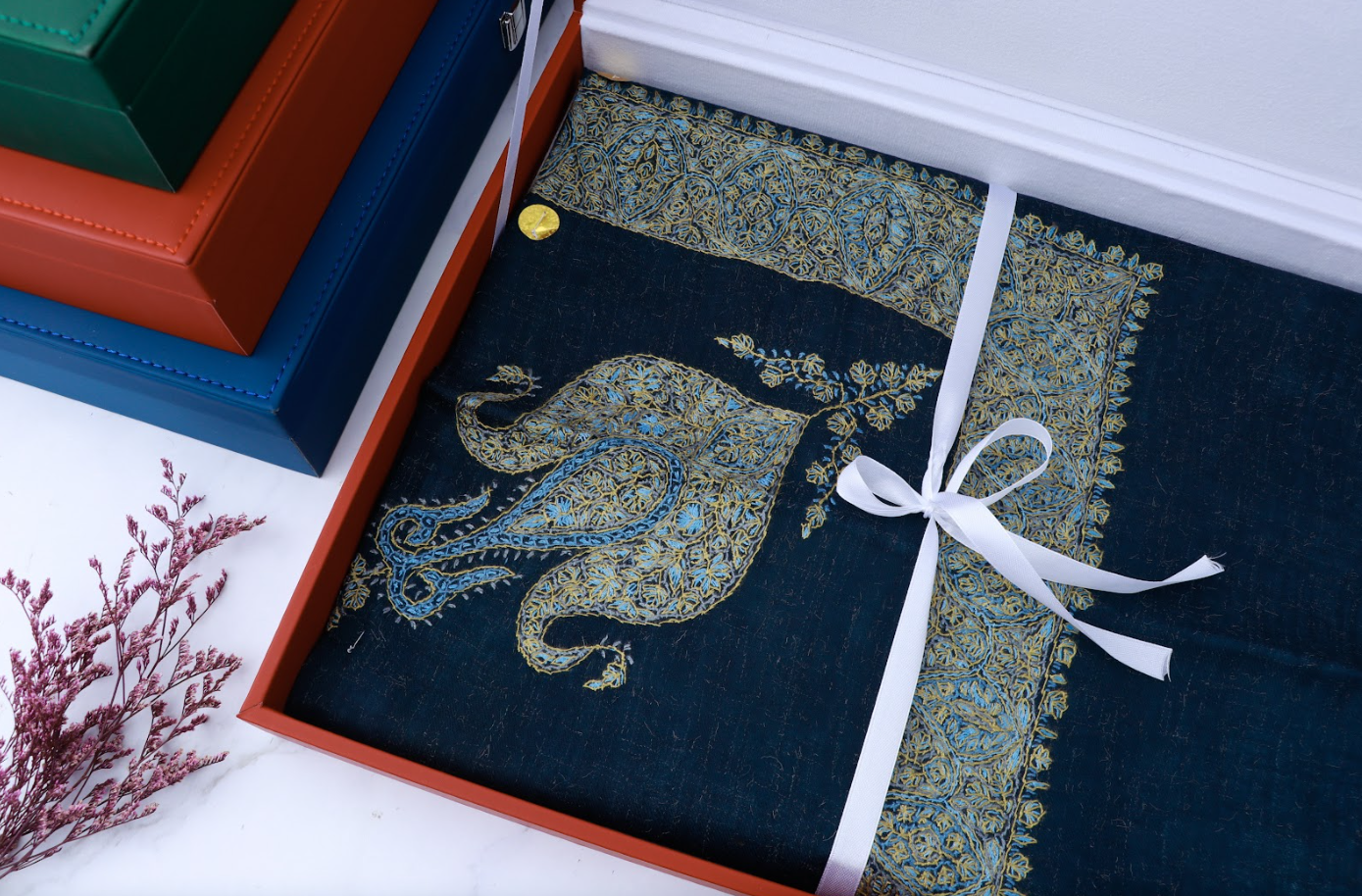 اكتشف الفخامة والراحة مع الغتر الكشميري من النسيج، الذي يأتي مع صندوق جلدي أنيق ليمنحك تجربة فريدة تجمع بين الجمال والأناقة. مصنوع من خام كشميري فاخر، يضمن لك الراحة والدفء مع لمسة من الفخامة في كل إطلالة.